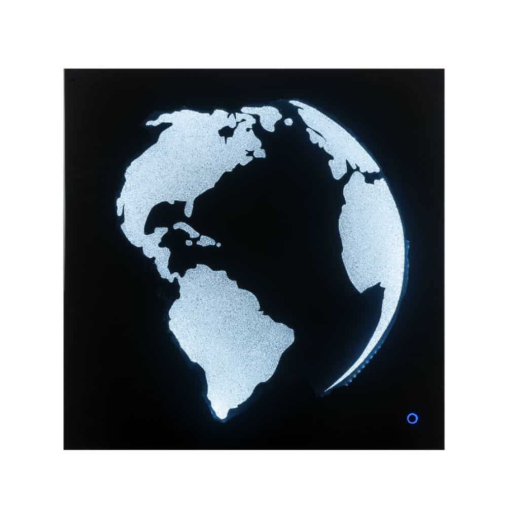 Wall art w/LED lights. Yeah, you heard that right. Step up the surroundings of your home with this incredible Adamas collection of inspiring art featuring LED touch lighting. The high-quality faux crystal world pattern encased glass frame. At night, you can turn on and off the LED function. A glam display table that naturally attracts the eye.