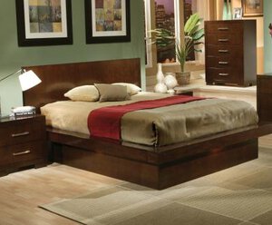 Jessica Cappuccino California King Size Platform Bed, Dresser, Mirror, & Nightstand Set
