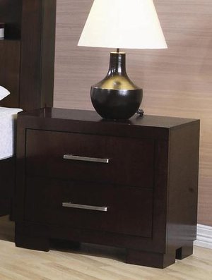 NightstandPlace this stylish contemporary nightstand in your master bedroom for a unique look that you will love. The piece has a sleek case, in a rich dark finish accented with silver tone bar handles. Block feet complete the sophisticated look. Use as a standard nightstand for additional storage at your bedside, or add the back panels next to the platform bed to create a bold pier bed.Dimensions: 26\”L x 15\”W x 23\”H*Item NOT Eligible for Return/Refund*