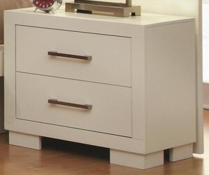 NightstandYou can have a clean and casual companion for your bedside with this attractive nightstand. The piece carries a crisp white finish and features ash veneers and wide handles, which provide an attractive contrast. In addition, the two drawers are wonderful for keeping books, magazines, lotions, alarm clocks and pens. Make your bedroom complete with this nightstand.Dimenions: 26\”L x 15\”W x 23\”H*Item NOT Eligible for Refund/Return*