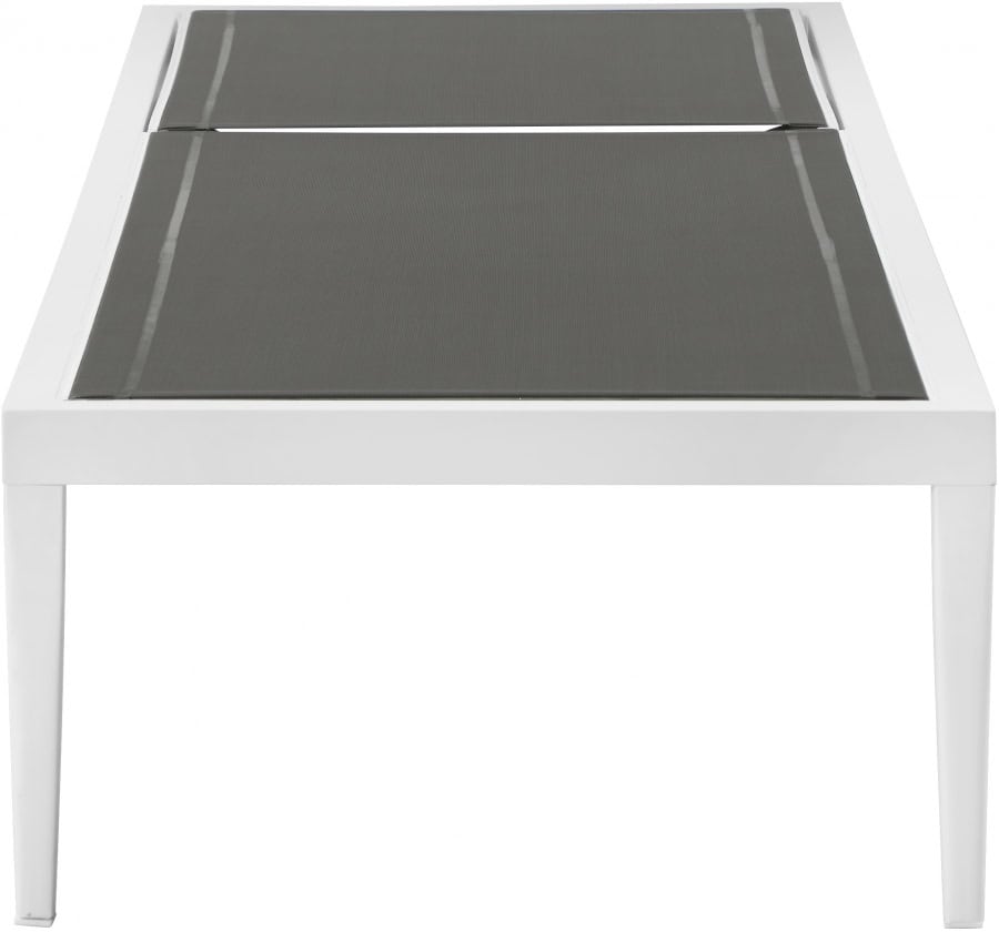 Pay homage to the sun worshipper within when you bring home this Nizuc outdoor patio adjustable sun chaise lounge chair. The white aluminum frame is the star of the show, giving it the staying power it needs to withstand use and abuse by sun revelers for years to come. The water resistant mesh fabric forming the body of the chair is perfect for keeping cool while you sun yourself, and because it’s mesh, it doesn’t hold on to moisture, which helps the chaise dry more readily after a summer rain. Wheels on the chair make it perfectly portable.