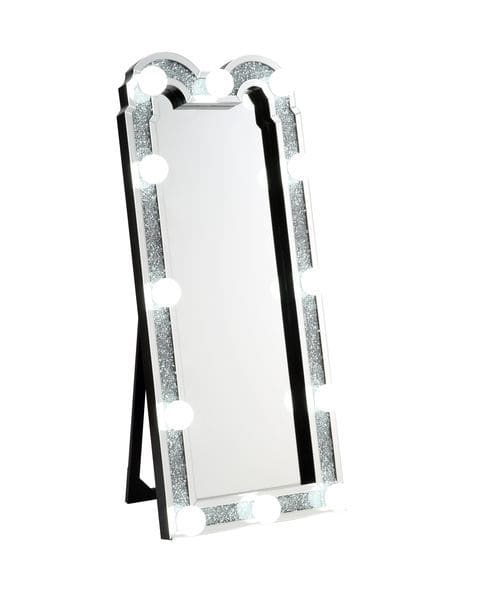 Accent Floor Mirror Hollywood Mirror Bulbs Not Included Beveled Mirrored Frame Trim: Faux Diamond Inlay & Clear Glass