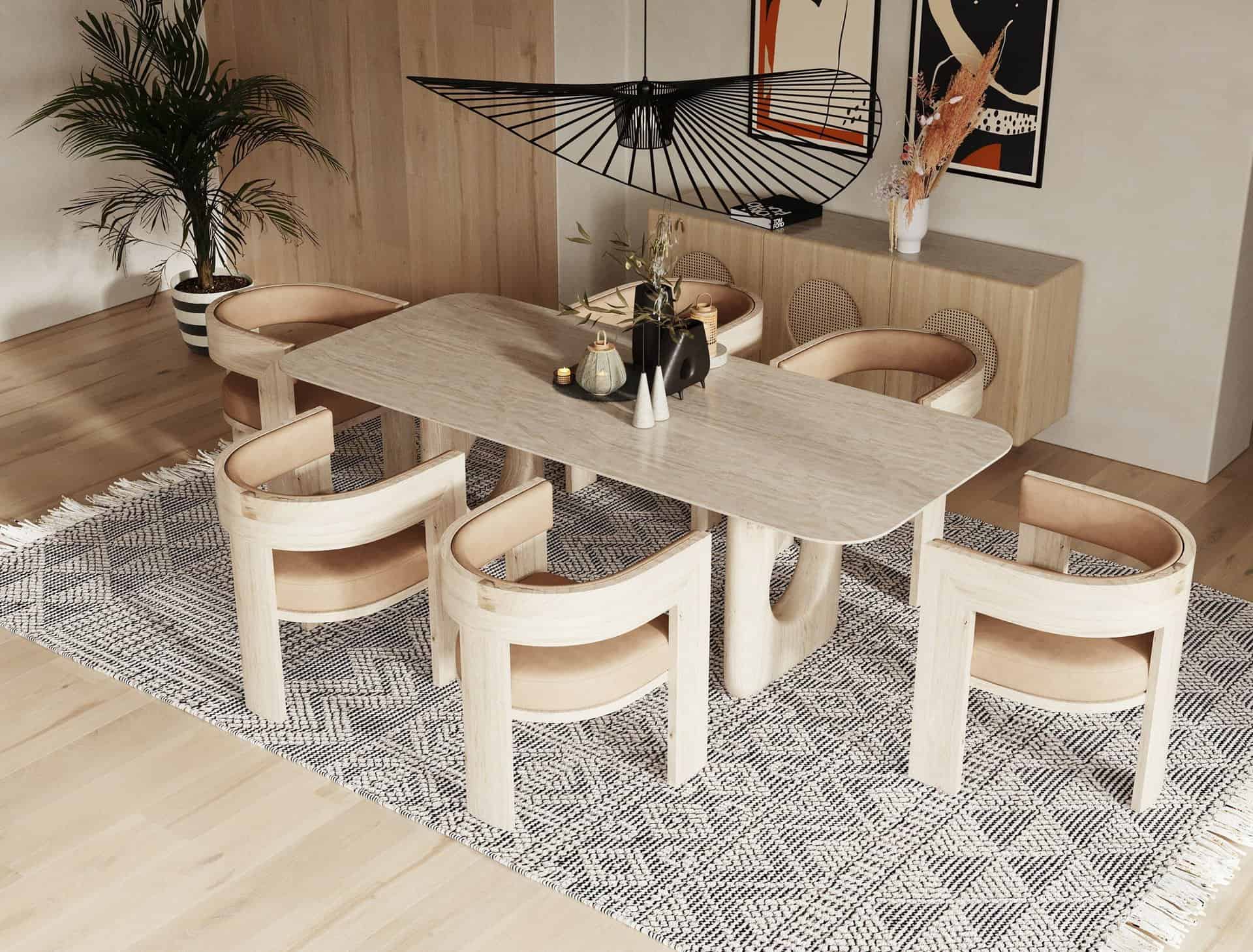 Update your dining room with the Nova Domus Osaka dining Table! This modern piece sports an abstract and rounded design that offers originality and style and comfortably seats up to 6. The faux marble top and natural ash wood legs bring light and bright elements into your home. The Osaka collection also includes a buffet, end table, console table, dining chairs and coffee table.