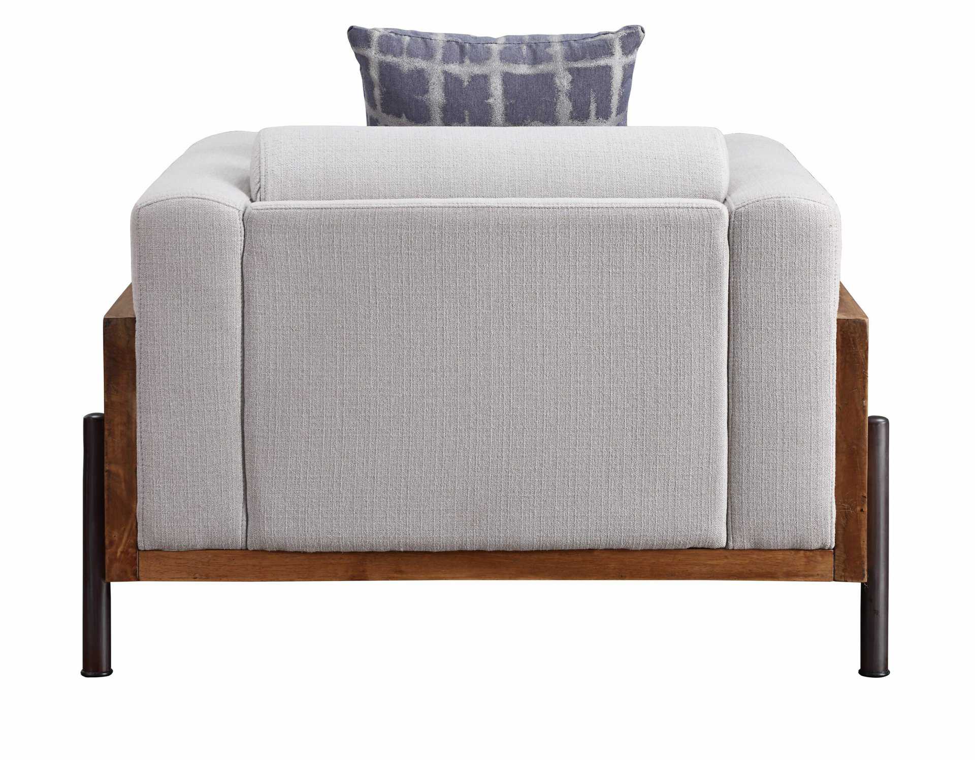 Our Acme exclusive Pelton chair will be the star of your living area. With deep, comfortable seats wrapped in a high shelter backrest in a beautiful walnut finish, this piece also features metal legs that lend a lightness to each generously-sized piece. On-trend loft style is yours with Pelton!
