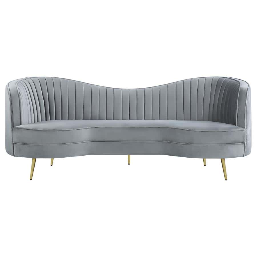 Sophia Upholstered Sofa with Camel Back Grey and Gold
