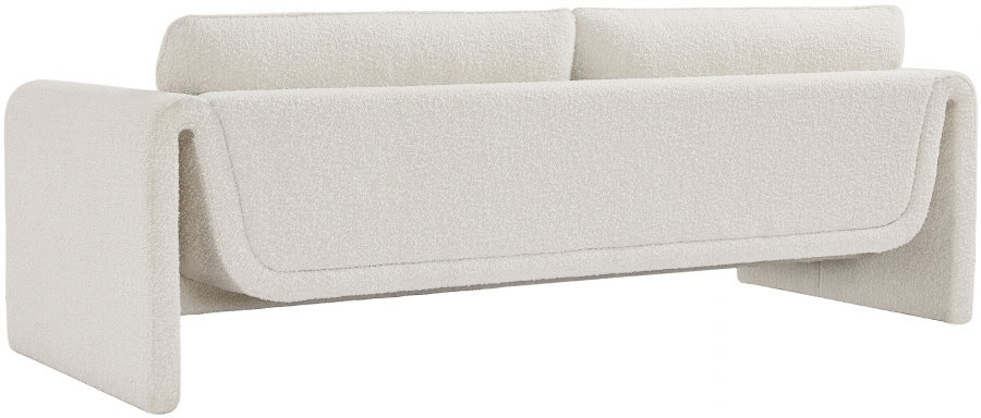 Impress family and guests alike with this Stylus boucle fabric sofa. This modish chair oozes contemporary panache with its curved arms and unexpected design elements. Thickly padded seat and back cushions cradle your body in supportive comfort while the rich cream boucle fabric caresses the skin and leaves you feeling relax and recharged. A wood frame ensures that the chair withstands the rigors of daily use without losing its lovely yet contemporary look.
