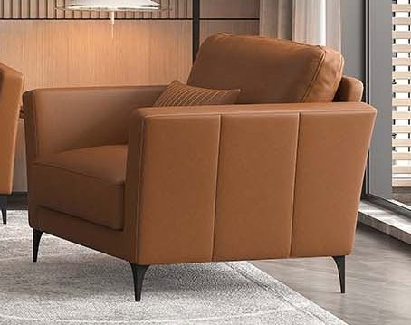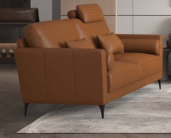 Made in Italy and upholstered in high-quality leather, the Tussio collection offers comfort and style. The gorgeous saddle tan leather finish is modern. Included are bolster cushions and pillows to match the seating. The headrest provides added comfort to the sofa and loveseat. The metal legs make transform this collection into a contemporary one.