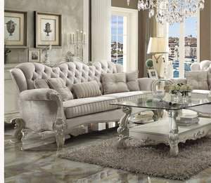 Sofa & Love SeatThe Versailles collection with bone white finish will create you an elegant, warm and traditional taste in your living room. The sofa set reflects highly decorative base with scrolled feet, and the upholstered seats with the deep button tufted and nail head trim accents add classic character and represents luxurious detailing. The collection is your perfect choice for your living room.Sofa Dimensions: 92\”L x 45\”D x 47\”HSeat Depth: 26\”Seat Height: 20\”*Item Eligible for Refund/Return*