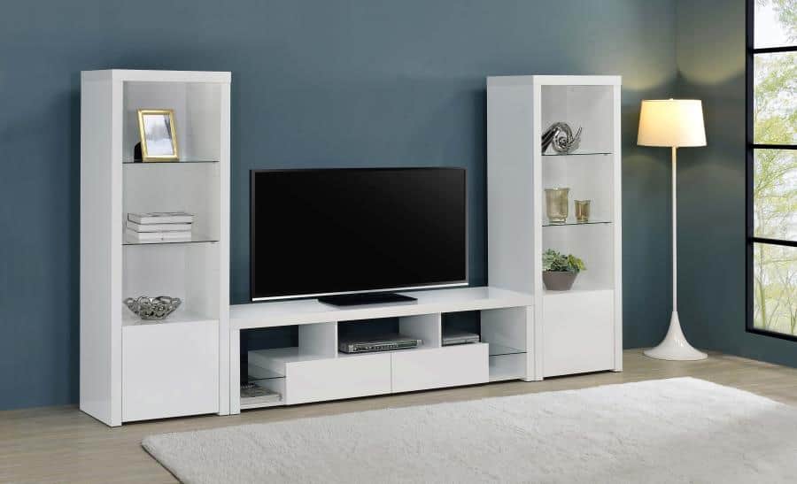 TV Stand Dimensions: 78.75″W x 15.50″D x 17.75″H